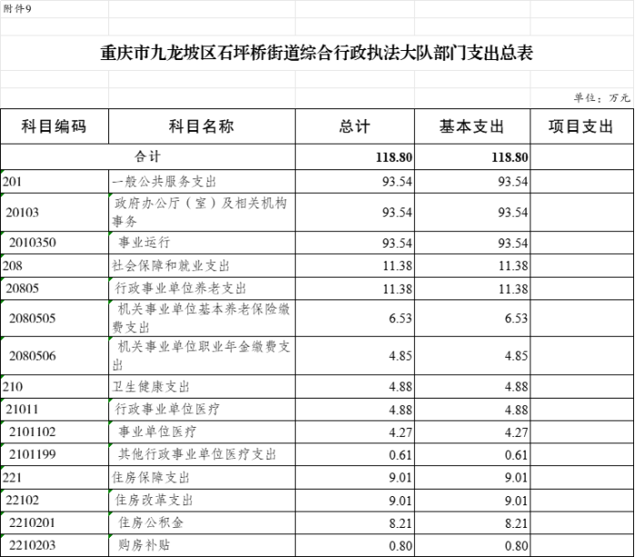 9.2025年九龍坡區(qū)石坪橋街道綜合行政執(zhí)法大隊部門支出總表(功能科目分類到項)