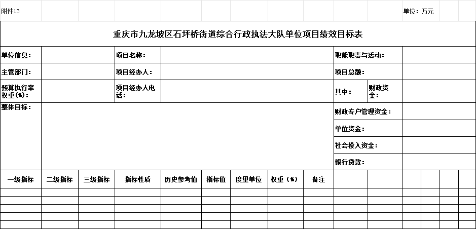 13.2025年九龍坡區(qū)石坪橋街道綜合行政執(zhí)法大隊單位項目績效目標表