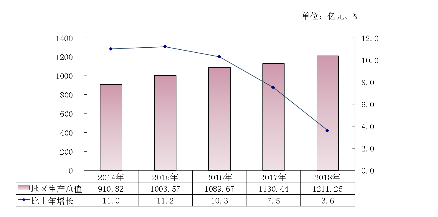 初步核算,全年實(shí)現(xiàn)地區(qū)生產(chǎn)總值1211.25億元,按不變價(jià)格計(jì)算,比上年增長3.6%。按常住人口計(jì)算,全年人均地區(qū)生產(chǎn)總值99279元,比上年增長2.6%。