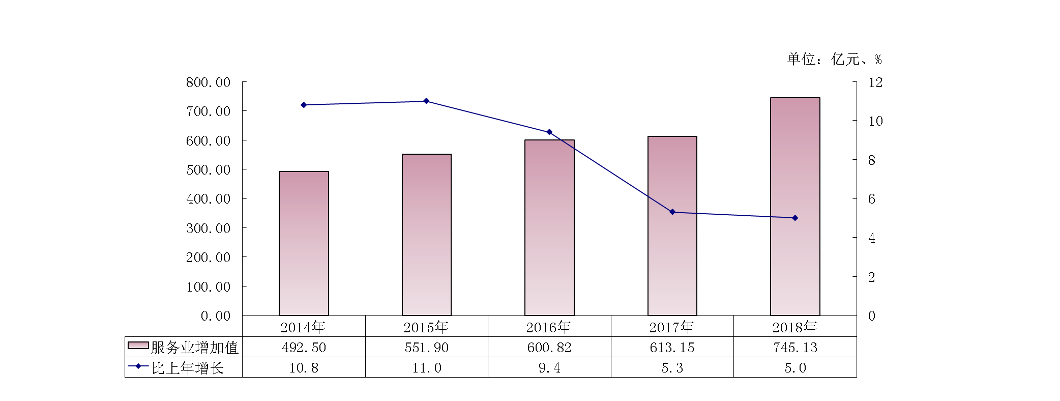 全年實(shí)現(xiàn)服務(wù)業(yè)增加值745.13億元,比上年增長5.0%。全年規(guī)模以上服務(wù)業(yè)企業(yè)營業(yè)收入比上年增長4.8%。