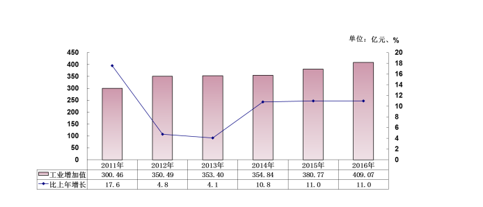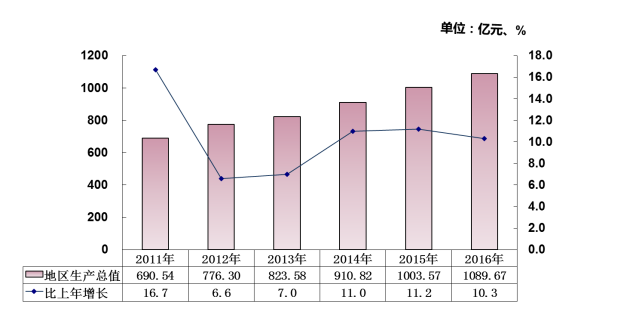 ? ? ? ? ? ? ? ? ? ? ? ? ? ?圖1??2011-2016年地區(qū)生產(chǎn)總值及其增長(zhǎng)速度