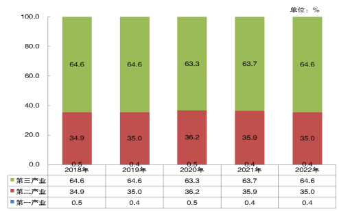 圖2? 2018-2022年三次產(chǎn)業(yè)增加值占全區(qū)地區(qū)生產(chǎn)總值比重