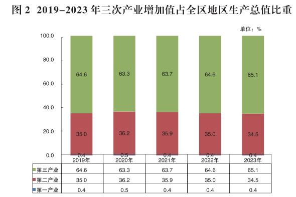 從三次產(chǎn)業(yè)對經(jīng)濟增長的貢獻看,一、二、三產(chǎn)業(yè)對全區(qū)經(jīng)濟的貢獻率分別為0.3%、23.4%、76.3%。從對經(jīng)濟增長的拉動看,二、三產(chǎn)業(yè)分別拉動經(jīng)濟增長1.5、5.0個百分點。