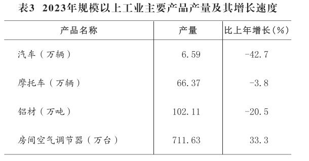 全年實現(xiàn)工業(yè)增加值437.63億元,比上年增長2.7%。規(guī)模以上工業(yè)增加值增長3.1%,分主要行業(yè)看,汽車制造業(yè)增長8.1%,摩托車制造業(yè)增長1.5%,有色金屬冶煉及加工業(yè)增長1.2%,電氣機械及器材制造業(yè)增長61.1%,計算機、通信及其他電子設(shè)備業(yè)下降10.8%。年末規(guī)模以上工業(yè)企業(yè)達到485個。