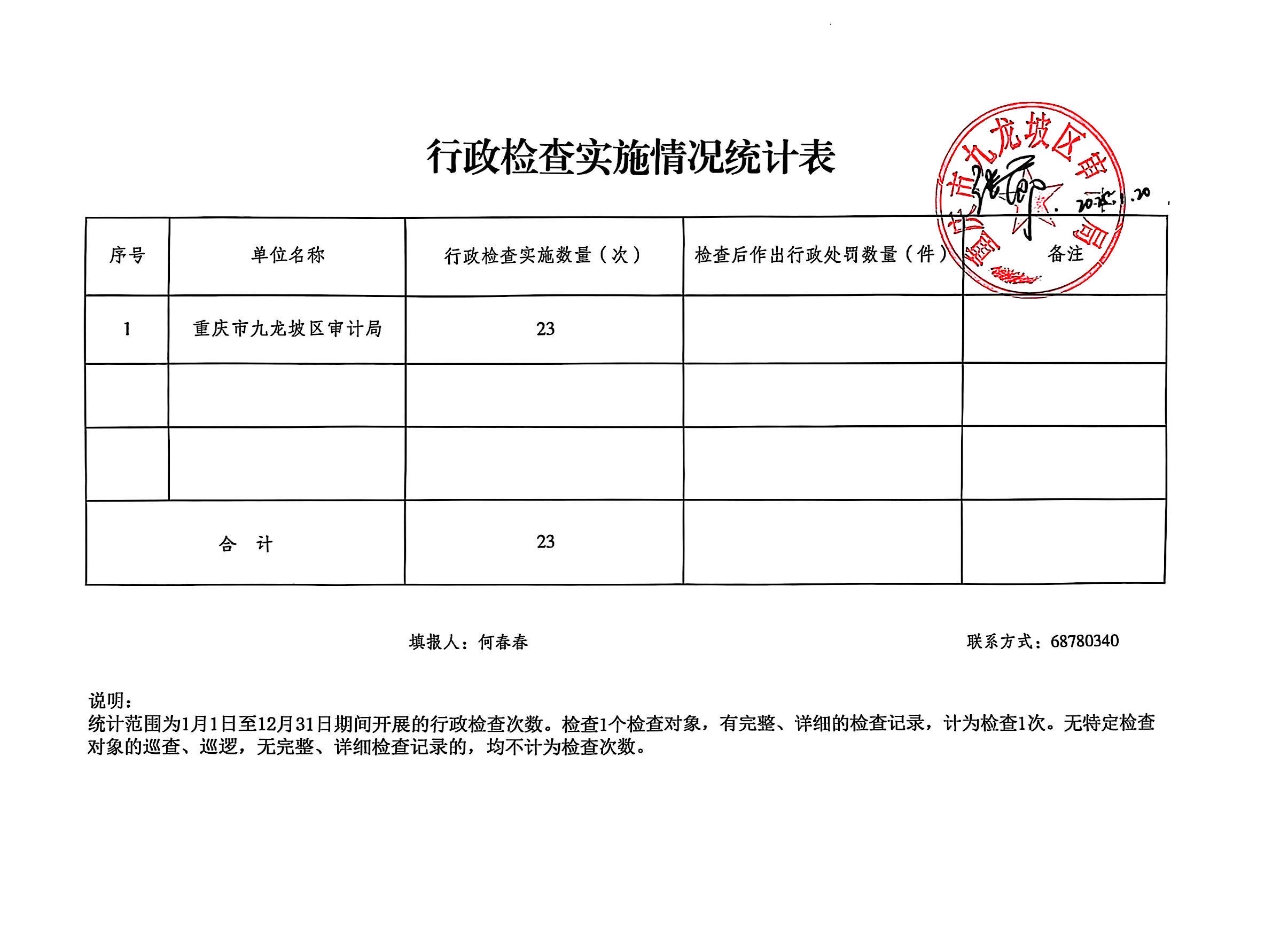 重慶市九龍坡區(qū)審計局2024年度行政執(zhí)法數(shù)據(jù)