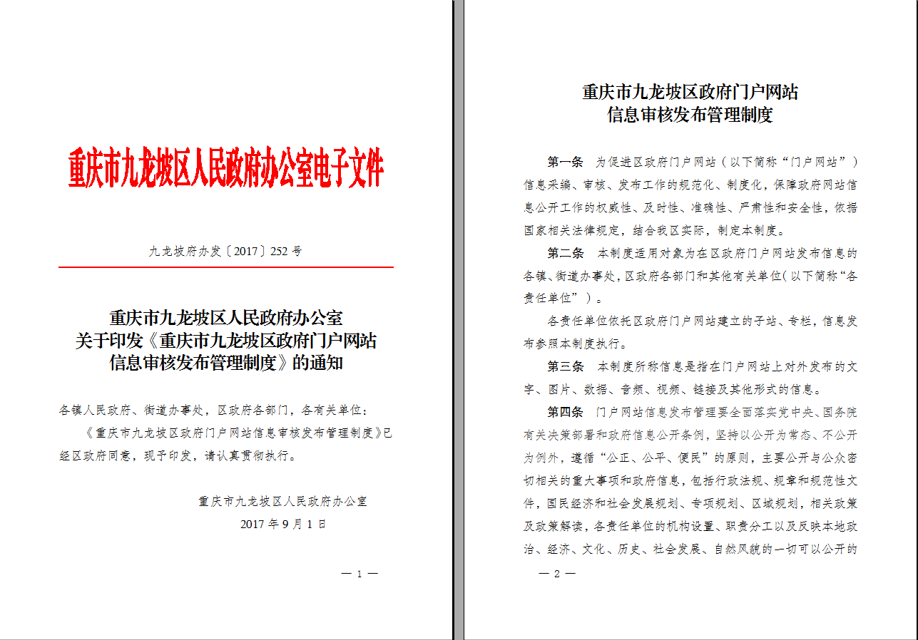 重慶市九龍坡區(qū)人民政府辦公室關(guān)于印發(fā)《重慶市九龍坡區(qū)政府門戶網(wǎng)站信息審核發(fā)布管理制度》的通知
